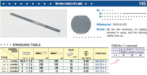 切削工具>切削工具 切削材料>锉刀>薄平锉(什锦锉)HIU 0501